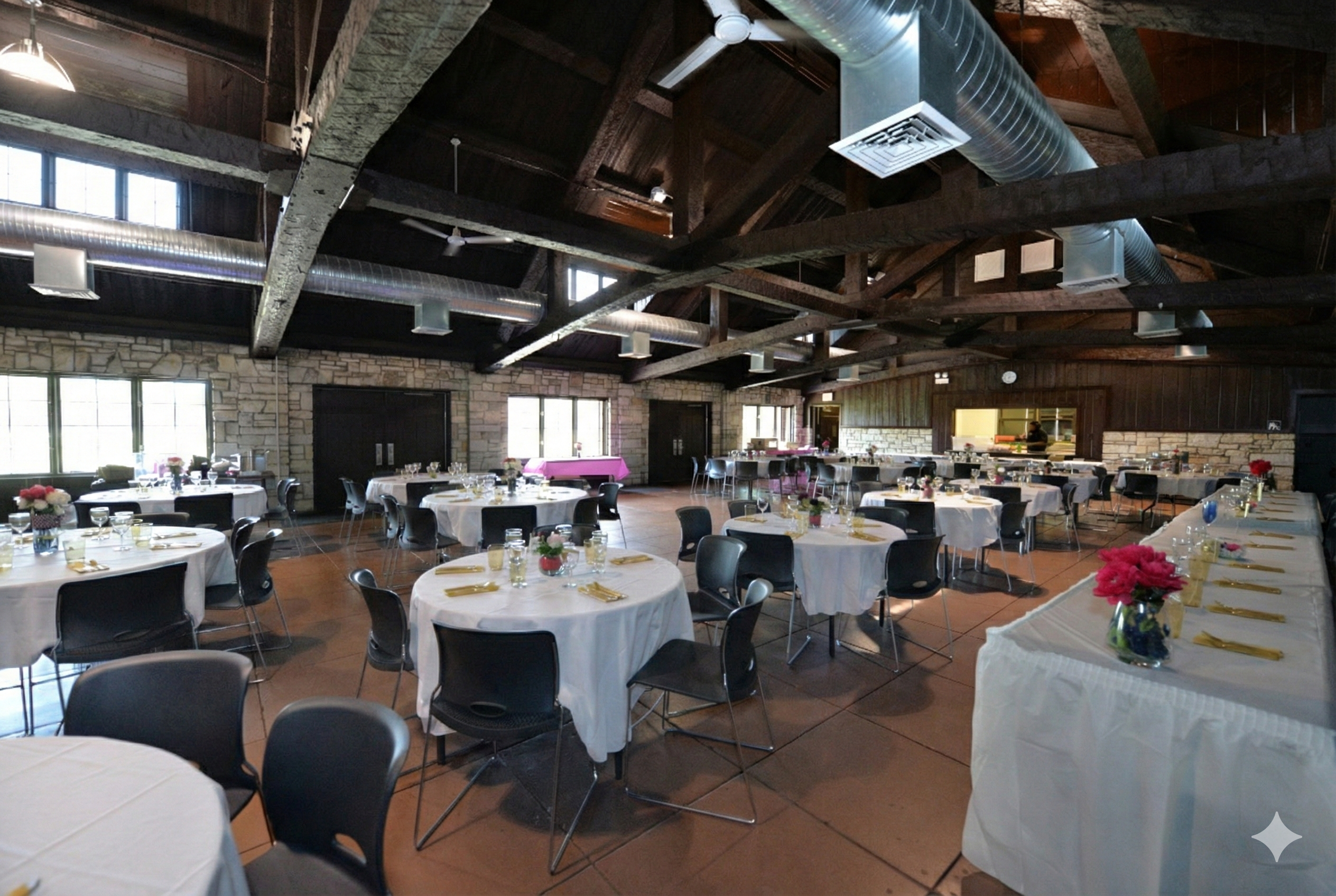 Versatility is the key word for the Dan Ryan Woods Pavilion. The wide open design can be arranged to suit a variety of affairs, functions and occasions.