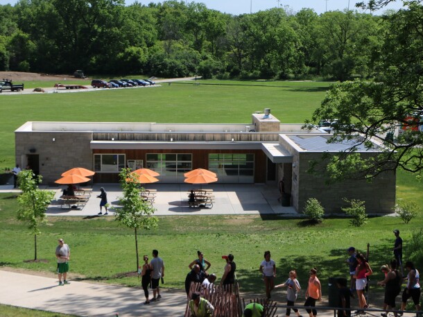 Just north of the 100-foot bluff and popular fitness stairs, the Swallow Cliff Pavilion is perfect for any occasion. Built in 2016, this LEED Silver-certified facility provides an intimate setting for birthday parties, showers, classes and meetings for up to 40 guests.