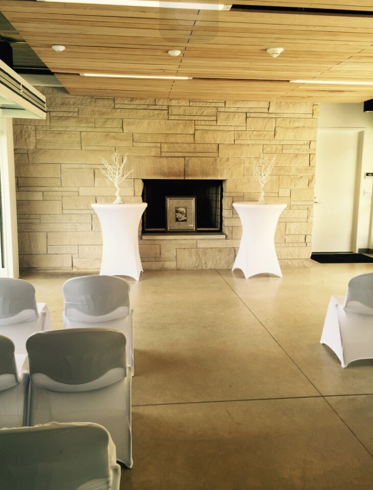 In addition to the wood-burning brick fireplace, the Pavilion features a kitchen prep area, refrigerator/freezer and access to restrooms. This location does not have air conditioning however the floor-to-ceiling windows on either side of the building open completely to allow a cool breeze or create an amazing indoor/outdoor experience.